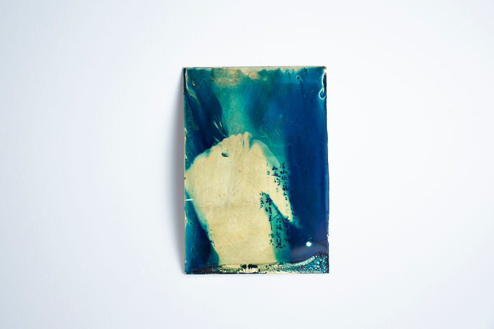 Oxidizing Body 將藍曬技法製作於金屬板上,創作出會氧化的影像,顛覆當今對於影像永恆性的想像,如實呈現時間於作品身上所留下的痕跡。